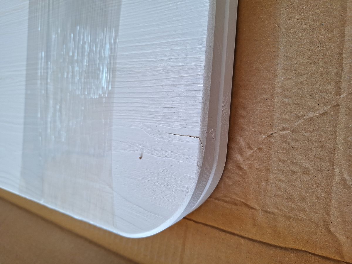 Povrchové oděrky, otlaky vlivem manipulace (přeprava) Zažloutlé dřevo, jemná prasklina na čele ne hluboká. Na místech popraskaná barva jemně.