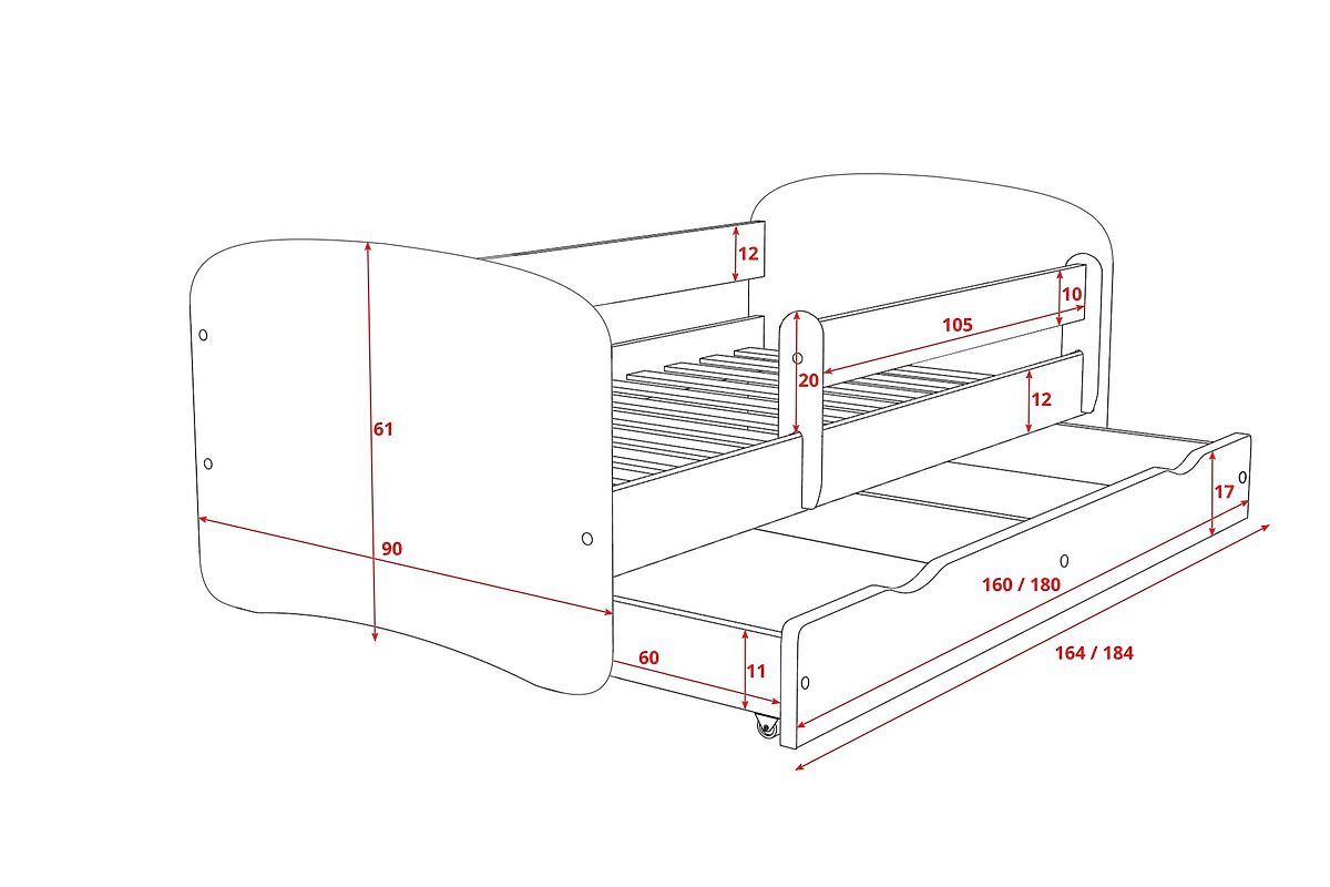 | Provedení postele: | se zábranou, s úložným prostorem, s potiskem |