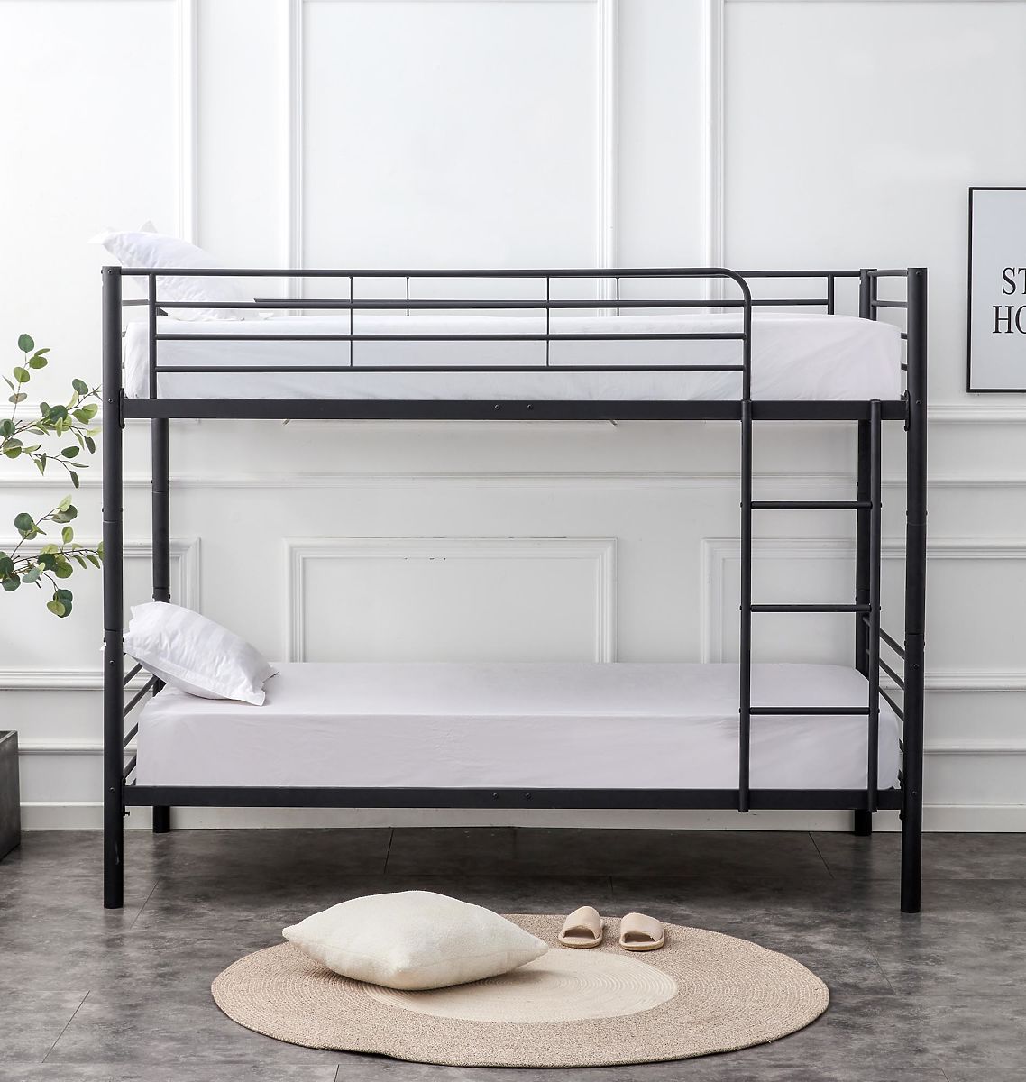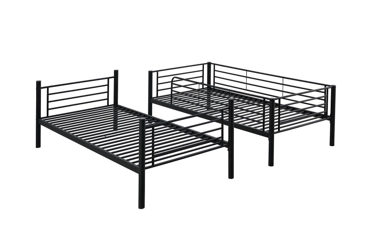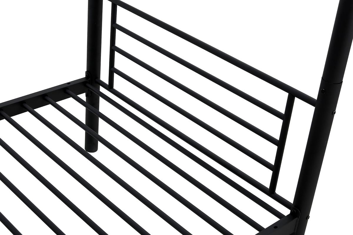 Moderní černá dvoupatrová kovová postel BUNKY je ideální volbou pro ty, kteří hledají praktické a elegantní řešení nejen pro dětský, ale také i studentský pokoj.