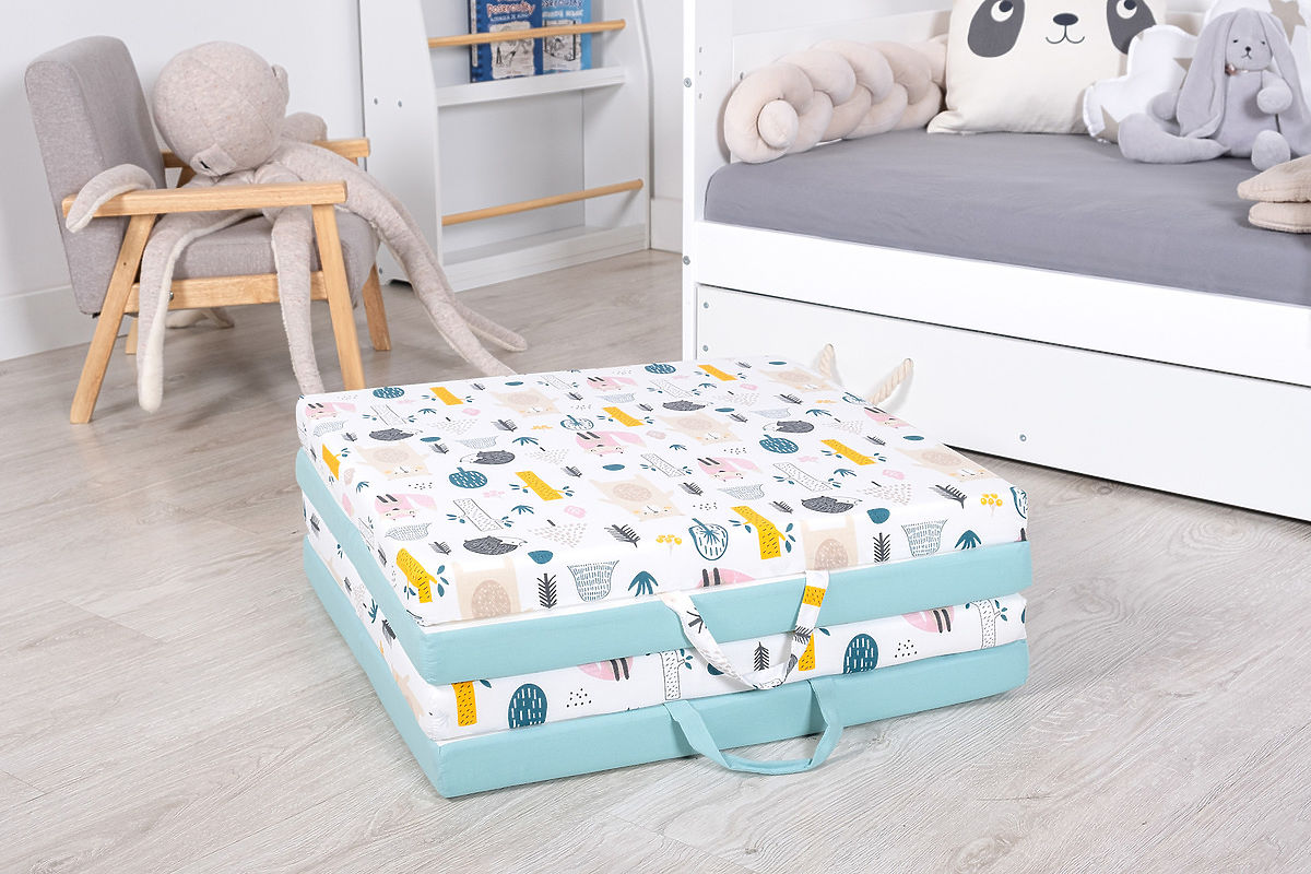 Rozkládací přenosná matrace Quatro je skvělým pomocníkem starostlivých rodičů a aktivních dětí. Matraci lze použít jako podložku na hraní pro miminka, místo pro odpočinek nebo pro větší děti jako podložku pro různé gymnastické aktivity. Děti se často vrhají do různých dobrodružství jako je hra země je láva, skákání z postele, výmyky na houpačce nebo lezení na různé předměty. Podložka může zabránit nepříjemným následkům pádům. Můžete ji také využít jako podložku na přespání pro kamarády.