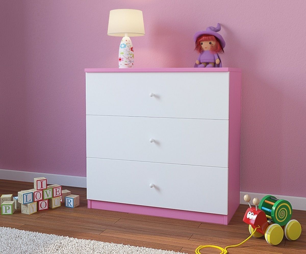 Komoda z kolekce Ourbaby vyrobena z vysoce kvalitní lamino desky. V krásném řůžovo-bílém provedení, které se bude hodit do všech holčičích pokojíčků.