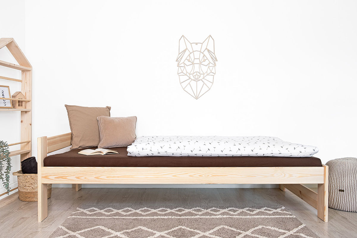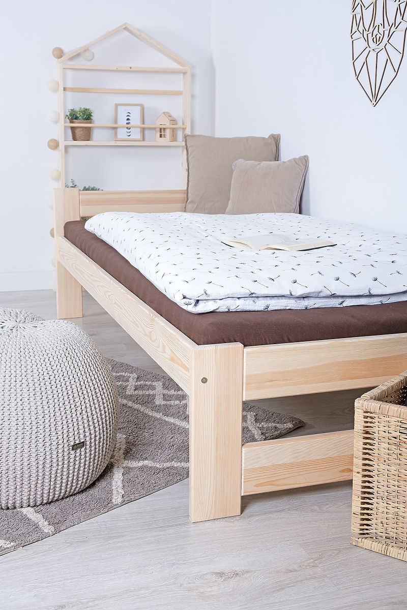 Tato postel přináší do vašeho interiéru autentický a nezaměnitelný prvek. Každá postel je vyrobena z pečlivě vybraného borovicového dřeva, a to bez lakování, aby byl zachován přirozený vzhled a textura dřeva. Je stabilní a spolehlivá, poskytující vám pohodlný spánek a noční odpočinek.