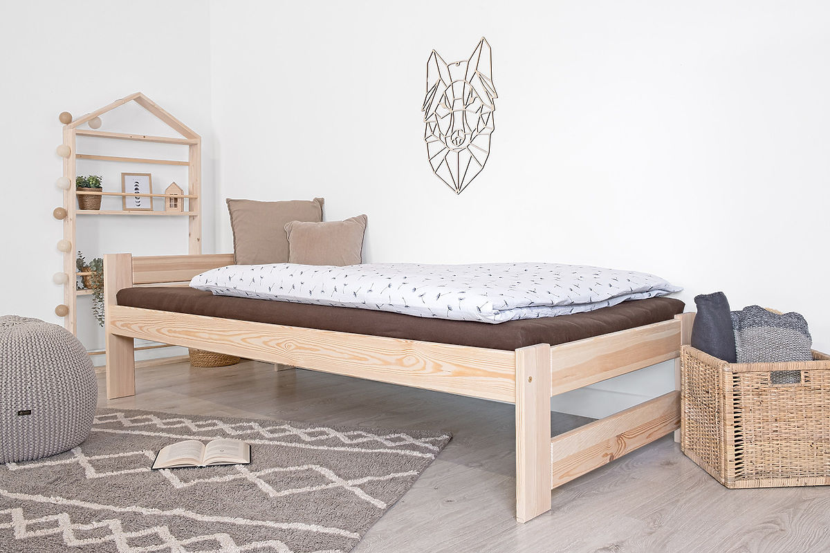 Lakovaná postel Mel 200x90 je navržena tak, aby do vašeho interiéru vnášela autentičnost. Každý kus postele je vyroben z pečlivě vybraného borovicového dřeva, které bylo důkladně ošetřeno lakem pro zvýraznění jeho přirozeného vzhledu a textury. Tento lak navíc chrání dřevo před vnějšími vlivy a prodlužuje jeho životnost.