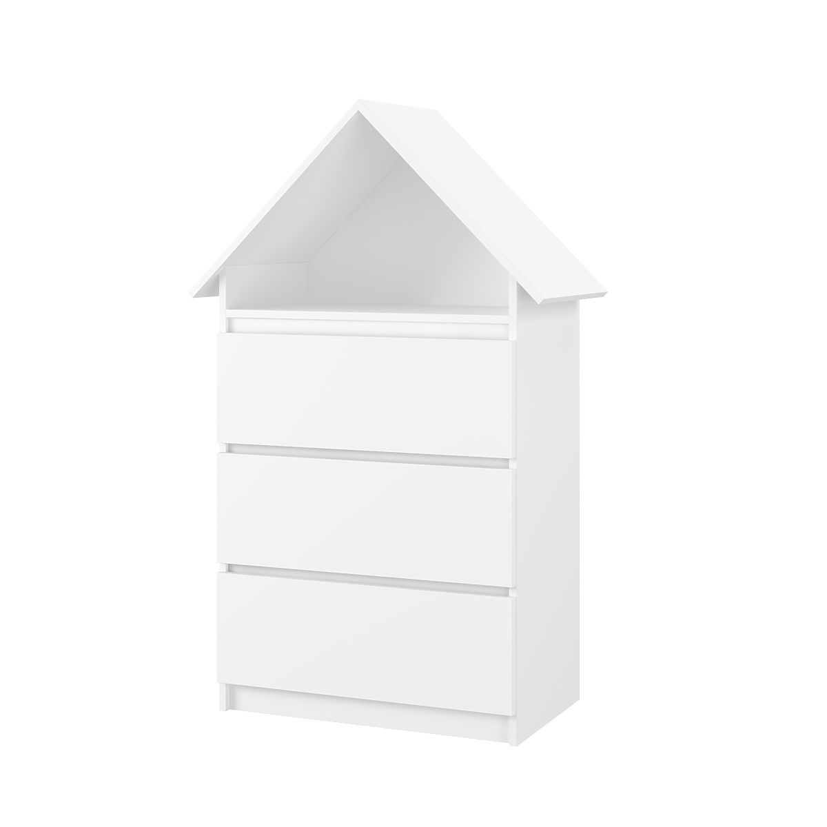 Domečková komoda je velmi pevná a stabilní. Je vyrobená z kvalitní bílé dřevotřísky. Její údržba je jednoduchá, nečistoty stačí otřít vlhkým hadříkem.