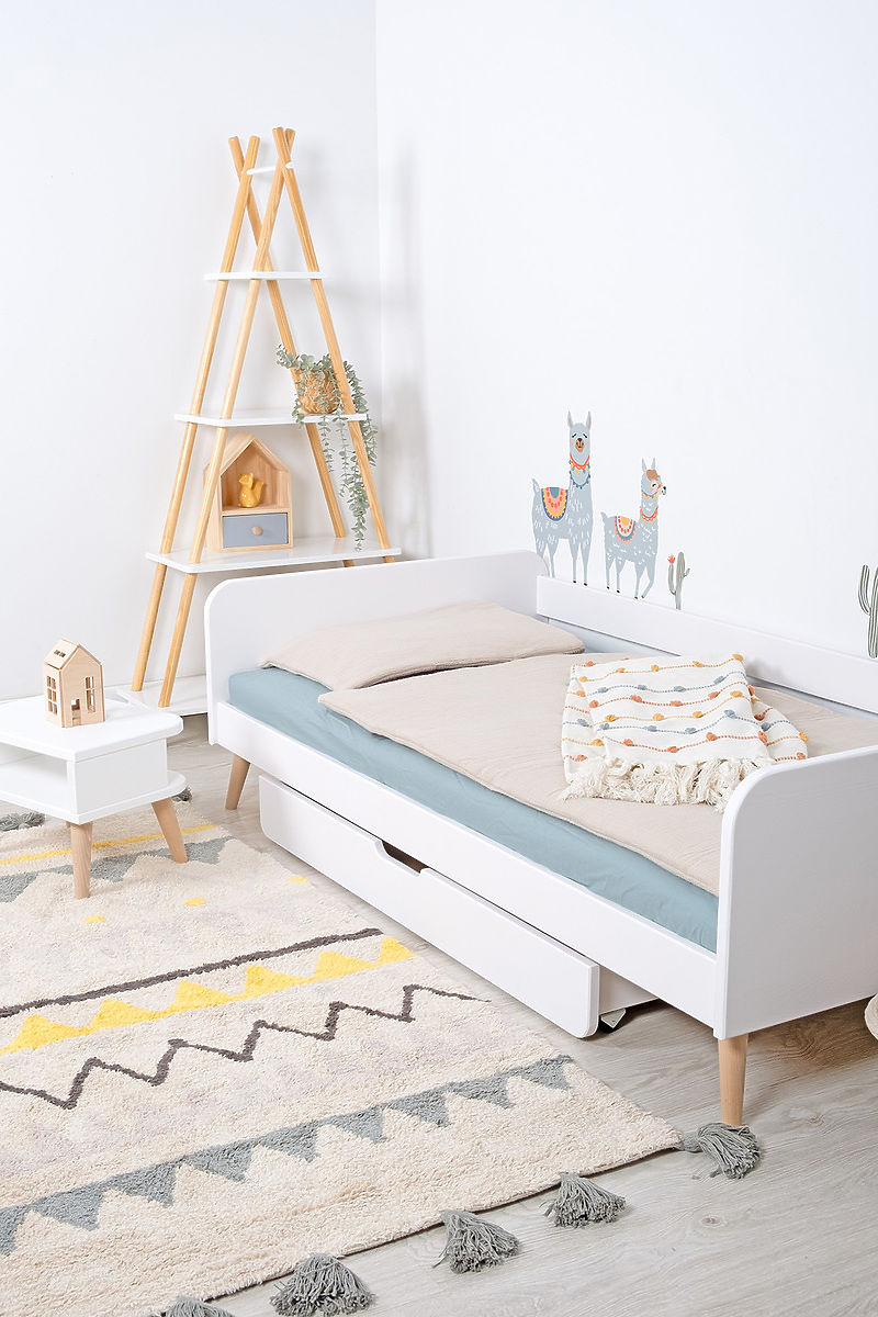 Postel Nell 2v1 naší značky Ourbaby přináší do dětského pokoje spojení moderní elegance s praktickostí. Varianta postele v bílé barvě se bude hodit do každého interiéru. Její jemně zaoblené tvary propůjčují nadčasový design a pohodlí, což z ní činí nejen místo pro spánek, ale také prostor pro snění a dobrodružství. Inspirujeme se konceptem Montessori a díky nízkému profilu podporujeme nezávislost dětí, umožňujíc jim samostatně vstupovat a opouštět svět spánku a podporuje jejich sebeúctu a samostatnost.