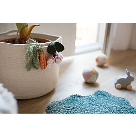 Kulatý vlněný pouf od španělské značky Lorena Canals na bázi bavlněného plátna barveného uhlím a designem inspirovaným polem v měkkých barvách Sea shell a Moonlight. Puf má zapínání na zip a vyjímatelný vnitřní polštářek vyplněný polystyrenovými kuličkami.