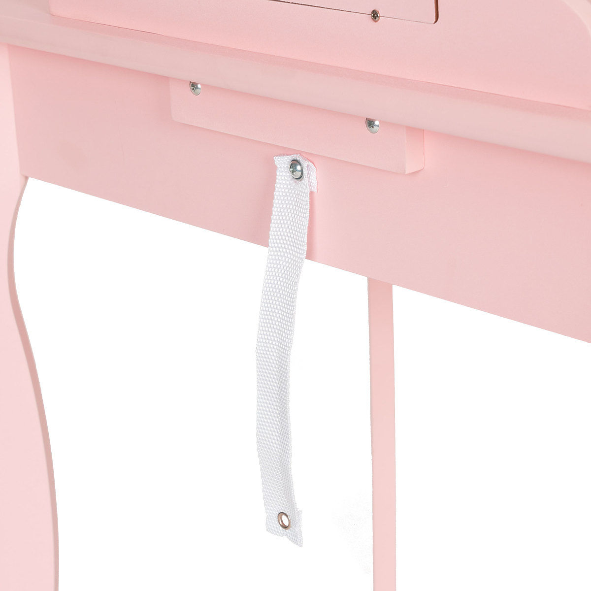 Toaletní stolek má také praktickou zásuvku, do které si dítě může uložit poklady, šperky nebo doplňky na hraní. Zásuvka je navržena tak, aby se dala snadno otevírat a zavírat, což vašemu dítěti umožňuje samostatně organizovat svůj malý svět.