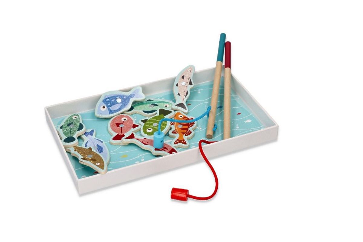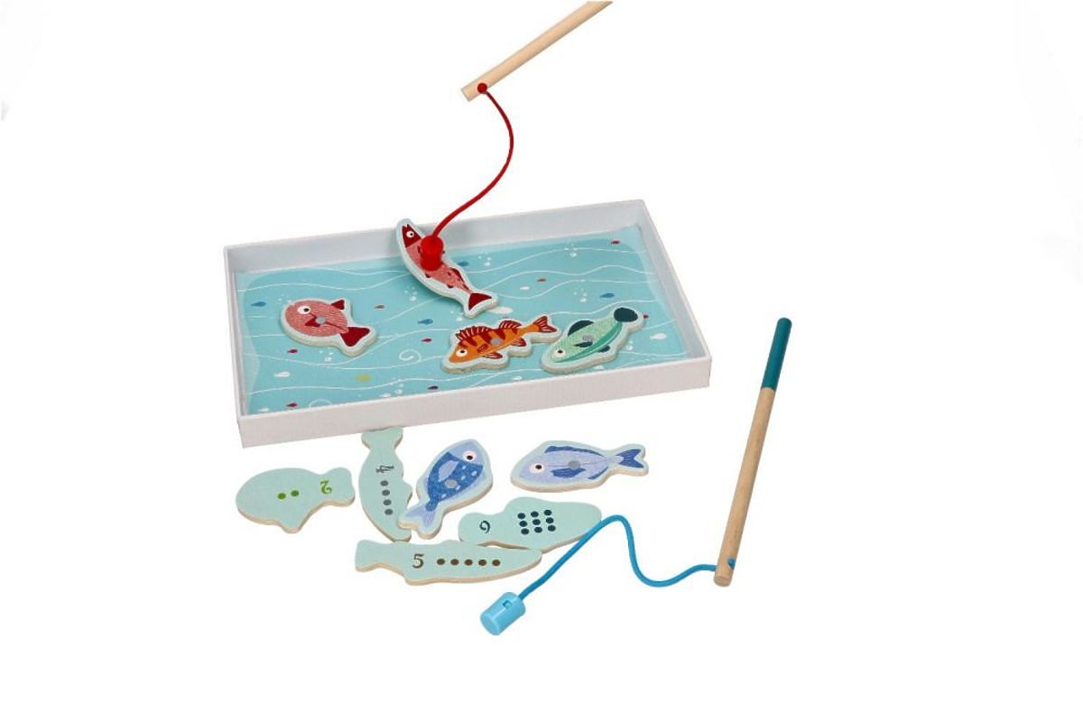 Hoďte udice a chyťte je všechny, a po úspěšném lovu spočítejte body. Díky tomu, že každá rybka má na zadní straně jiný počet teček a odpovídající číslo, dítě se může také učit počítat. Kvalita zaručena, hračka vyrobena s největší precizností od značky Adam Toys.