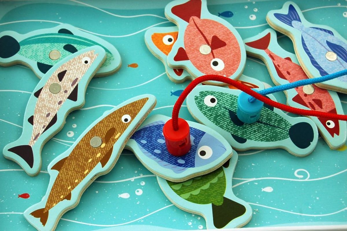 Co dělá tučňák, když potřebuje večeři? Chytá ryby ;-) V této krásné hře mu můžete pomoci. Hra byla navržena tak, aby děti rády cvičily motorické dovednosti. Zdánlivě jednoduchý úkol chytit něco na magnet, ale například vytáhnout konkrétní rybku nemusí být tak snadné. Navíc, díky tomu, že v sadě jsou dvě udice, můžete uspořádat soutěž v chytání ryb. Kdo chytí více rybek, nebo kdo chytí největší nebo nejchutnější rybku, nebo konečně kdo chytí rybku, která má nejvíce bodů? Stačí použít trochu fantazie, aby byla hra ještě zajímavější.