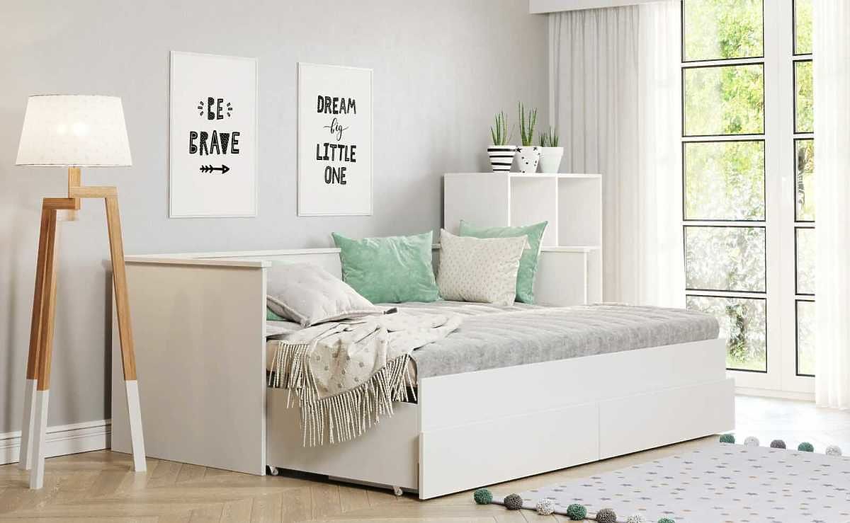 Hledáte vhodnou postel do studentského pokoje, ložnice či pokoje pro hosty? Ideální volbou je rozkládací postel HELIOS v bílé barvě. Tento model spojuje elegantní design s praktickou funkcionalitou. Na jednu stranu vnese do pokoje nádech jemnosti, vzdušnosti a harmonie. Na druhou stranu vás milé překvapí svou praktickou stránkou, kdy ji lze jednoduchým vysunutím roštu proměnit na manželskou postel. Úložný prostor vám poskytnou dvě prostorné zásuvky, což je výhodné pro ukládání ložního prádla, oblečení či různých věcí.