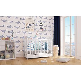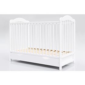 Bílá postýlka Alek je vhodná pro matraci o rozměru 120 x 60 cm.