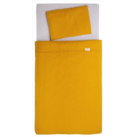 2-dílá sada mušelínového povlečení Heavens - hořčicová obsahuje povlak na přikrývku o rozměrech 100x135 cm a povlak na polštář o rozměrech 40x60 cm, oba vyrobené ze dvouvrstvého mušelínu. Jemná bavlna s dvojitou vrstvou zajistí maximální pohodlí a prodyšnost, takže se v noci vaše dítě nebudete přehřívat.