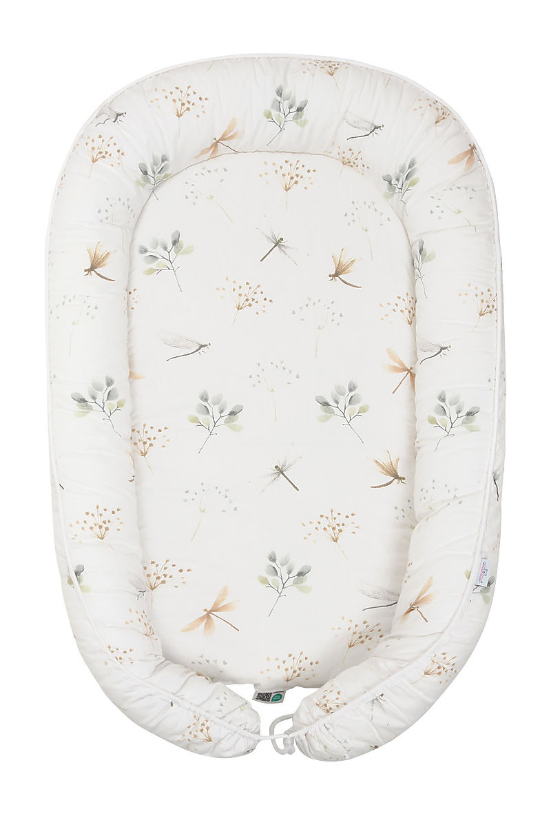 Bavlněné hnízdečko Dragonfly o rozměrech 80x55 cm s něžným vzorem ptáčků na bílém pozadí zajistí vašemu miminku maximální komfort a klidný spánek. Měkký a prodyšný potah ze 100% bavlny je šetrný k jemné dětské pokožce. Lehká a nadýchaná výplň ze silikonové netkané textilie (100% polyester) zaručuje optimální tepelnou izolaci.