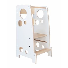 Moderní učící věž DOUBLE v přírodní barvě se skvěle hodí do rodin s více dětmi. Tento praktický pomocník je vhodný pro sourozence (např. dvojčata), kteří by se rádi zapojili do běžných pracovních činností a objevovali svět kolem sebe, což přispívá k celkovému rozvoji jejich osobnosti a socializaci. Zapojením dětí do domácích aktivit spolu zažijete mnoho legrace a nezapomenutelných chvil.