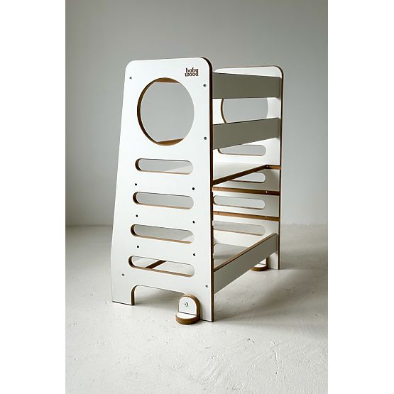 Krásná učící věž DOUBLE v jemném odstínu bílé barvy osloví zejména rodiče více dětí. Tento stylový a praktický pomocník je vhodný pro sourozence (např. dvojčata), kteří se chtějí zapojit do každodenních domácích aktivit a objevovat tak svět kolem sebe, což přispívá k celkovému rozvoji jejich osobnosti a socializaci. Společnou prací si spolu užijte spoustu legrace a nezapomenutelných chvil.