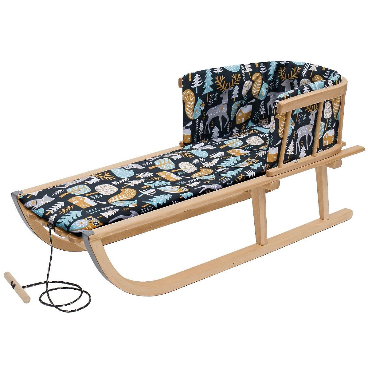 Dřevěné sáňky s polstrováním, na kterém se nachází krásný a neodolatelný motiv Lesa, určitě potěší všechny milovníky přírody a především sáňkování. Nevšední vzor se zvířátky a lesní krajinou si oblíbí chlapci i děvčata. Tyto sáňky promění dětské zimní radovánky v ten nejzábavnější zážitek.