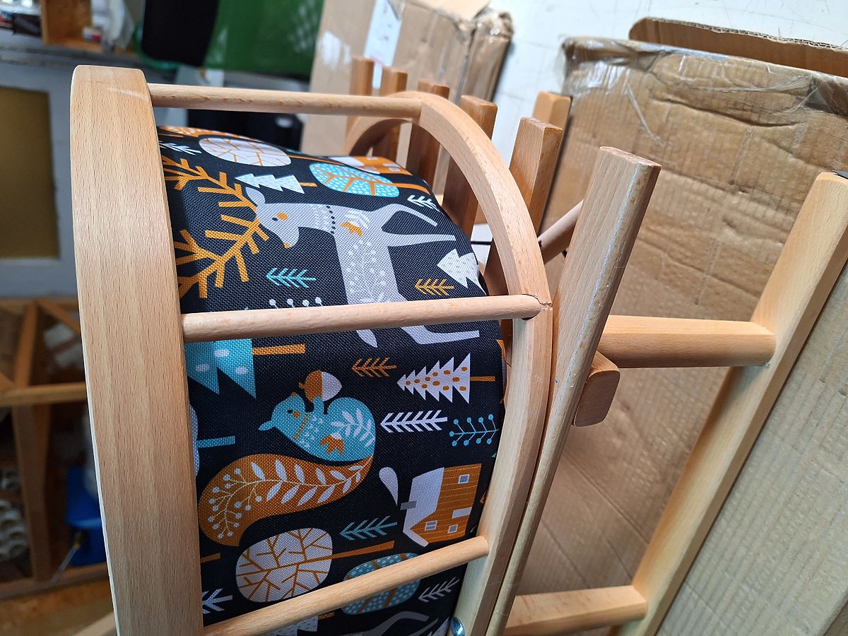 Sedací plocha se zadní opěrkou jsou polstrované kvalitní, odolnou a příjemnou tkaninou. To dětem zajistí příjemné pohodlí.