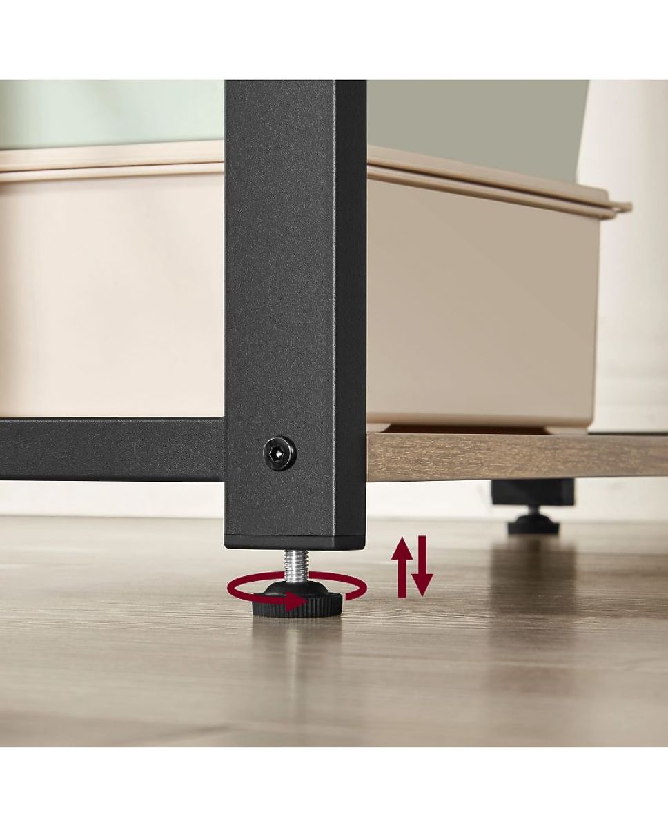 DOBŘE NAVRŽENOOcelová konstrukce stolu zaručuje stabilitu a odolnost po mnoho let, navíc nastavitelné nožky se ideálně hodí na nerovné povrchy. Díky nim můžete správně vyrovnat nábytek k podlaze.