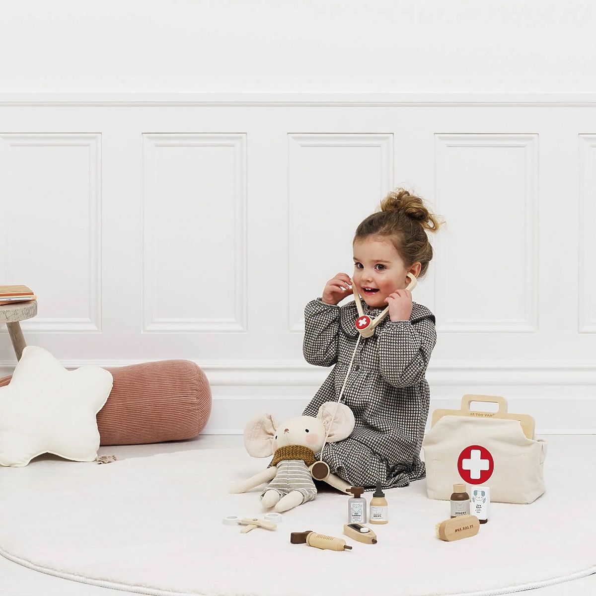 Zvířátka už čekají – je čas na kontrolu u nejlepšího doktora v okolí! S veterinární brašnou značky Le Toy Van se z každého dítěte stane zkušený zvěrolékař. Sada obsahuje vše potřebné pro ošetření plyšových mazlíčků. Stylová taška je nejen krásná, ale také praktická – všechny nástroje mají své místo a jsou vždy připravené k akci.