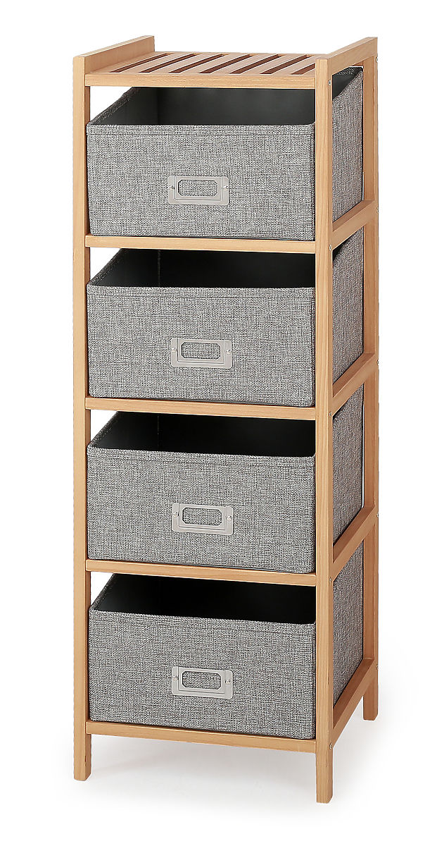 součástí regálu jsou 4 látkové boxy v šedé barvě