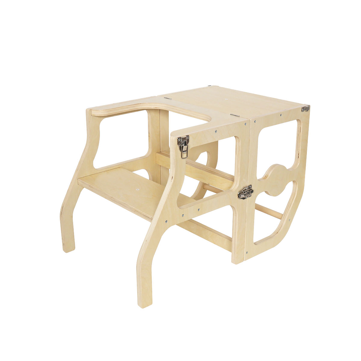 Skládací a ohýbatelná konstrukce: během okamžiku se promění z učící věže na stoleček se sedací plochou – ideální pro hraní, malování nebo svačinu.