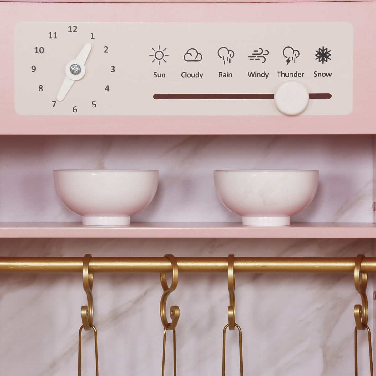 Přineste do dětského pokoje zábavu a kreativitu s kuchyňkou Siena v růžovém provedení s elegantními zlatými doplňky. Tato stylová kuchyňka je vybavena vším, co malí kuchaři potřebují: sporákem s troubou, mikrovlnkou, dřezem s funkčním kohoutkem, pračkou, lednicí, závěsy i poličkami. Každý detail je promyšlený a podporuje hru na domácnost a rozvoj představivosti.
