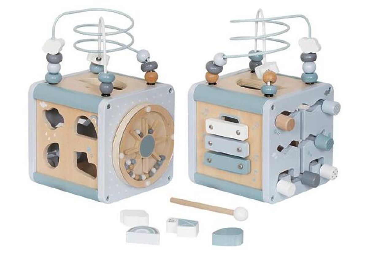 Tato interaktivní dřevěná kostka je skvělým pomocníkem při rozvoji jemné motoriky, koordinace rukou a očí i přemýšlení. Nabízí pestrý svět her, které děti nejen zabaví, ale i něco naučí. Ideální pro děti od 4 měsíců do 6 let.