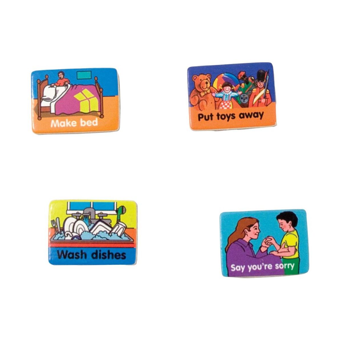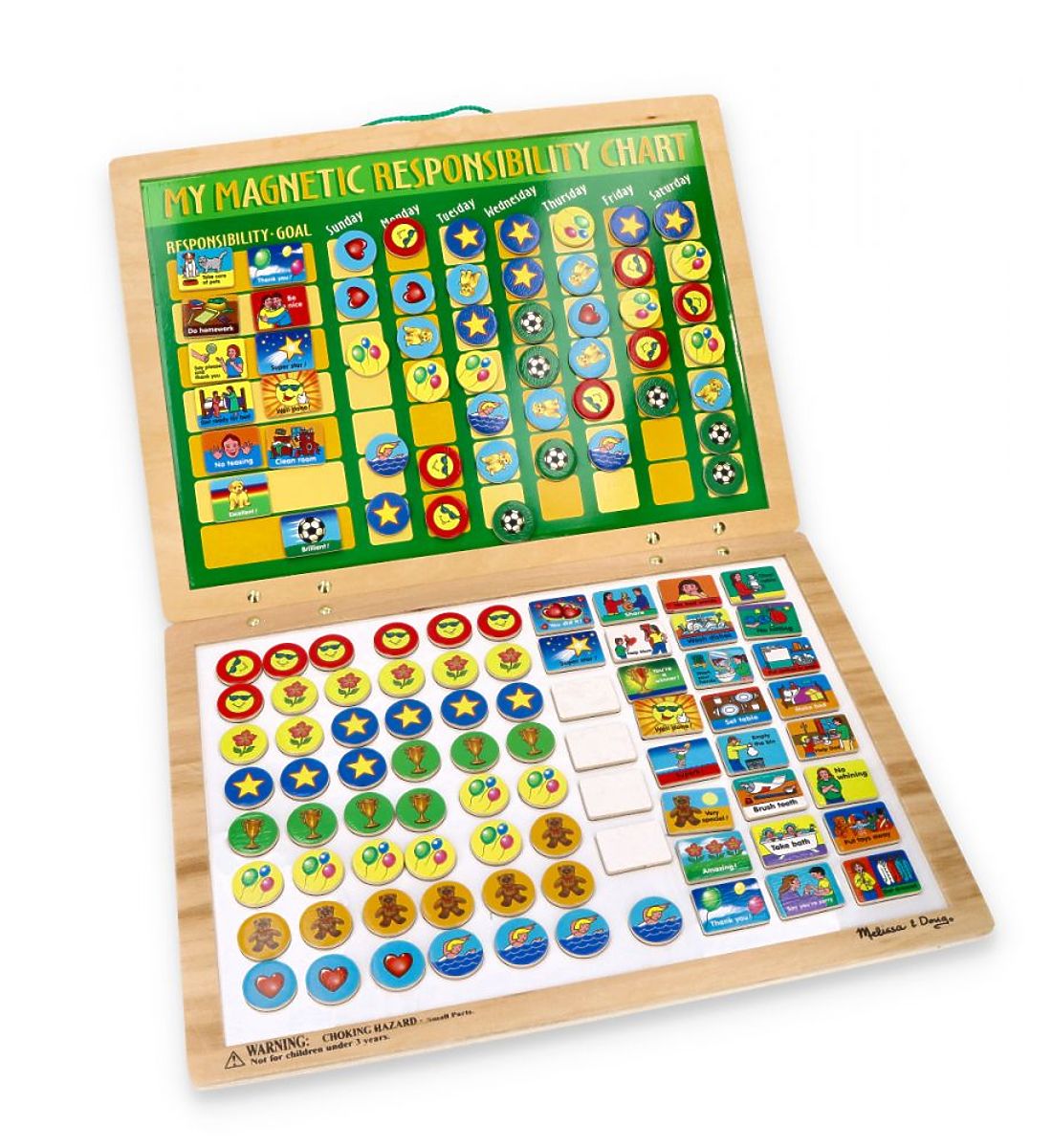 Celé v velmi barevném provedení, aby dítě povzbudilo ke společnému plnění stanovených cílů. Díky tabuli učíte dítě odpovědnosti a posilujete jeho motivaci k každodenní práci. Navíc se dítě může samo dobře bavit výběrem vlastních úkolů do sady a značek, které bude za jejich plnění dostávat. Každodenní připevňování značek může být vaší soukromou ceremonií.