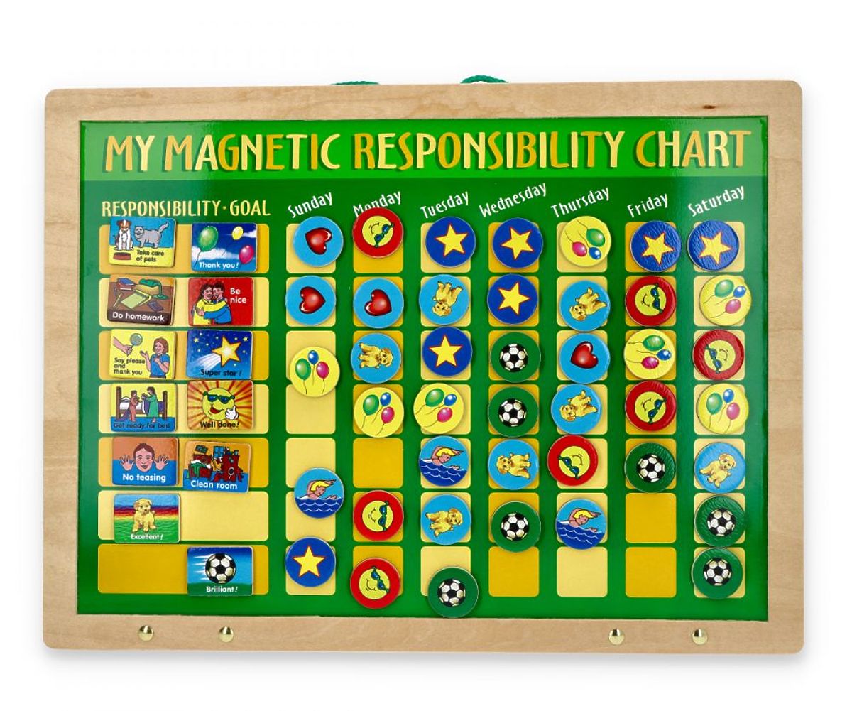 Organizace času a plánování dne je jednou z nejdůležitějších dovedností v životě každého z nás. Je dobré zajistit, aby naše děti mohly tuto dovednost úspěšně získávat již od útlého věku. Tabule odpovědnosti se ideálně hodí k tomuto procesu. Umožní dítěti naplánovat si plnění základních povinností v konkrétní den týdne. V našem obchodě představujeme tabuli, která vám pomůže při stanovení pravidel a zásad, které by dítě mělo znát, a při odměňování příslušným symbolem za jejich dodržování.