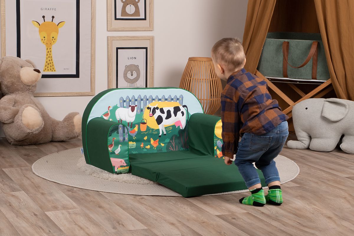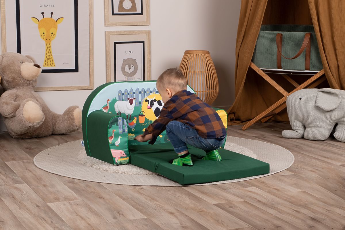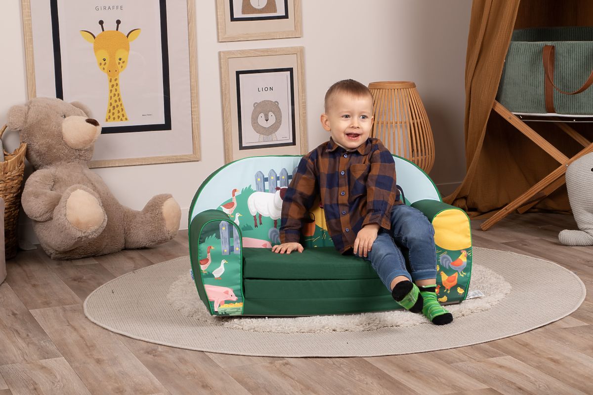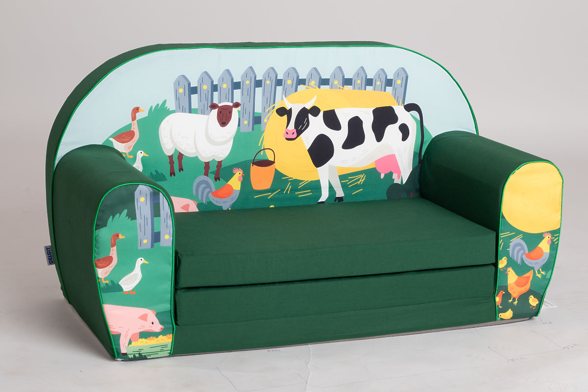 pohodlná dětská pohovka s motivem zvířátek z farmy