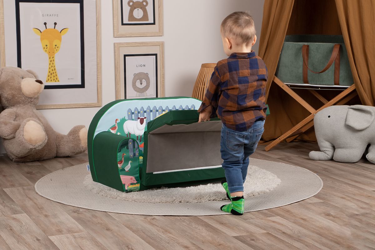 Objevte kouzlo venkova s touto roztomilou dětskou pohovkou se zvířátky z farmy!