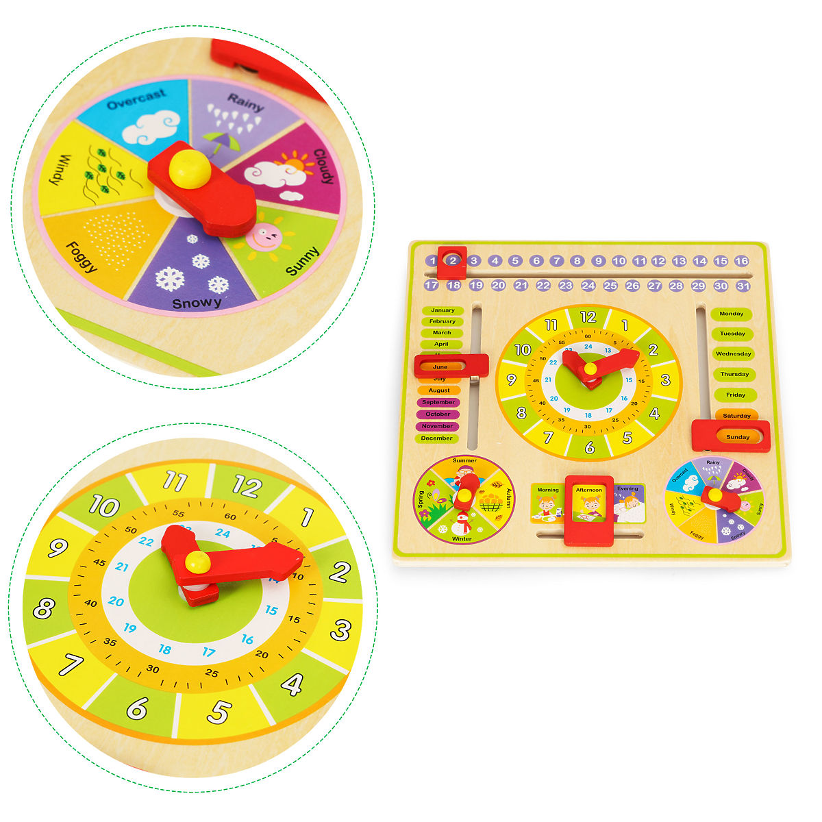 Dřevěná tabule pro učení času, měsíců a počasí. .. více
