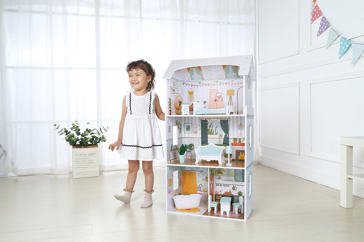 SKVĚLÁ ZÁBAVAKonstrukce domečku se skládá z 3 nezávislých úrovní, které obsahují 4 pečlivě navržené pokoje. Každý z nich se vyznačuje jedinečným stylem – výzdoba a nábytek byly přizpůsobeny charakteru a účelu daného prostoru, což dodává hře realismus. Zároveň domeček ponechává dítěti plnou svobodu uspořádání. Nic nebrání malému designérovi, aby si sám zařídil interiéry podle vlastních nápadů, čímž rozvíjí kreativitu a smysl pro estetiku.