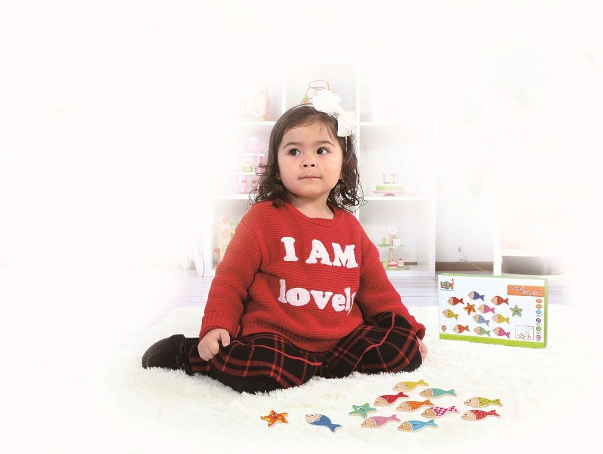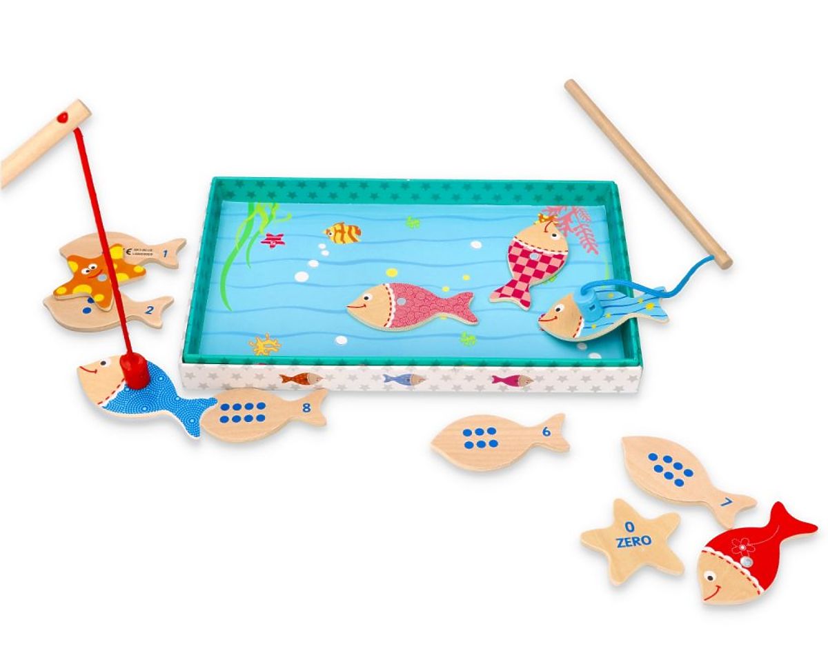 Snadná a příjemná hra pro celou rodinu. Každý hráč je vybaven svou vlastní udicí zakončenou magnetem, kterou je třeba nahodit a chytat rybičky. Každá rybička má na zadní straně číslo, které odpovídá počtu bodů za ulovený úlovek. Můžete se tedy bavit dvěma způsoby: kdo uloví více rybiček nebo kdo získá více bodů. Díky bodům si dítě může také zdokonalovat schopnost počítání.