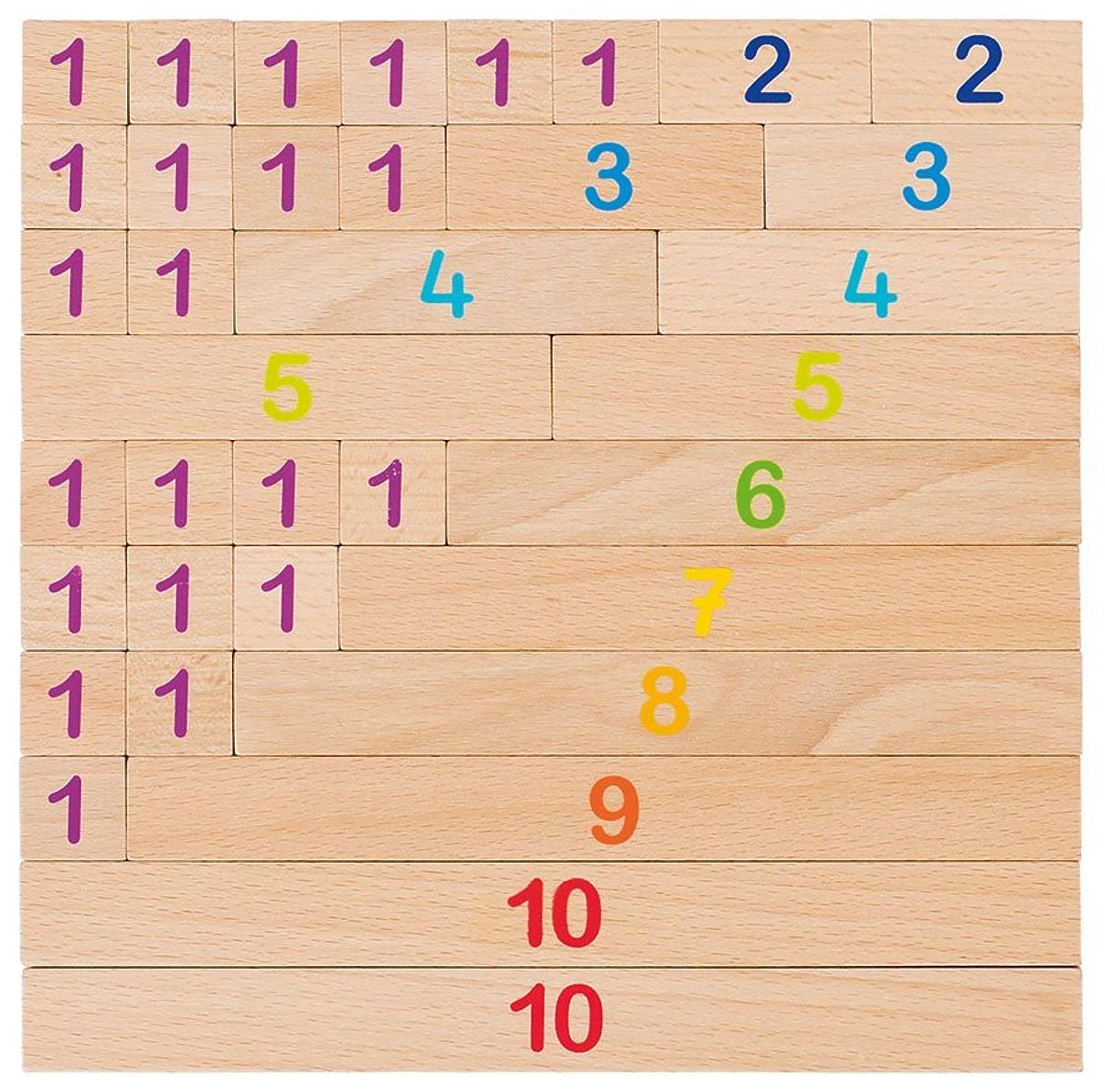 - sada obsahuje 36 kostek různých délek v závislosti na čísle umístěném na dané kostce: