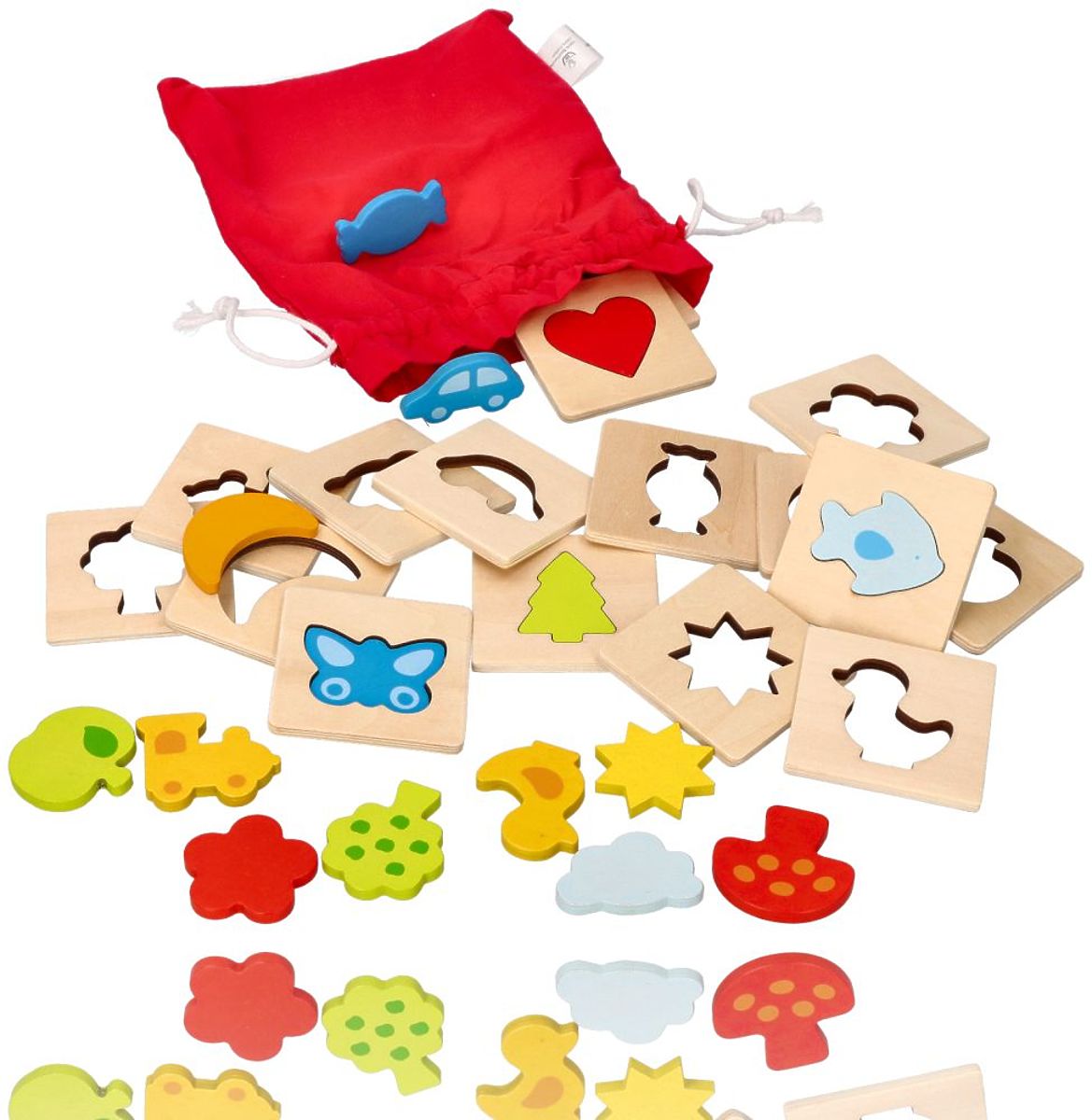 Hračka rozvíjí motoriku dítěte a učí trpělivosti. Pomáhá také v asociaci. Dřevěné prvky můžete navíc využít jako šablony pro obkreslování tvarů.