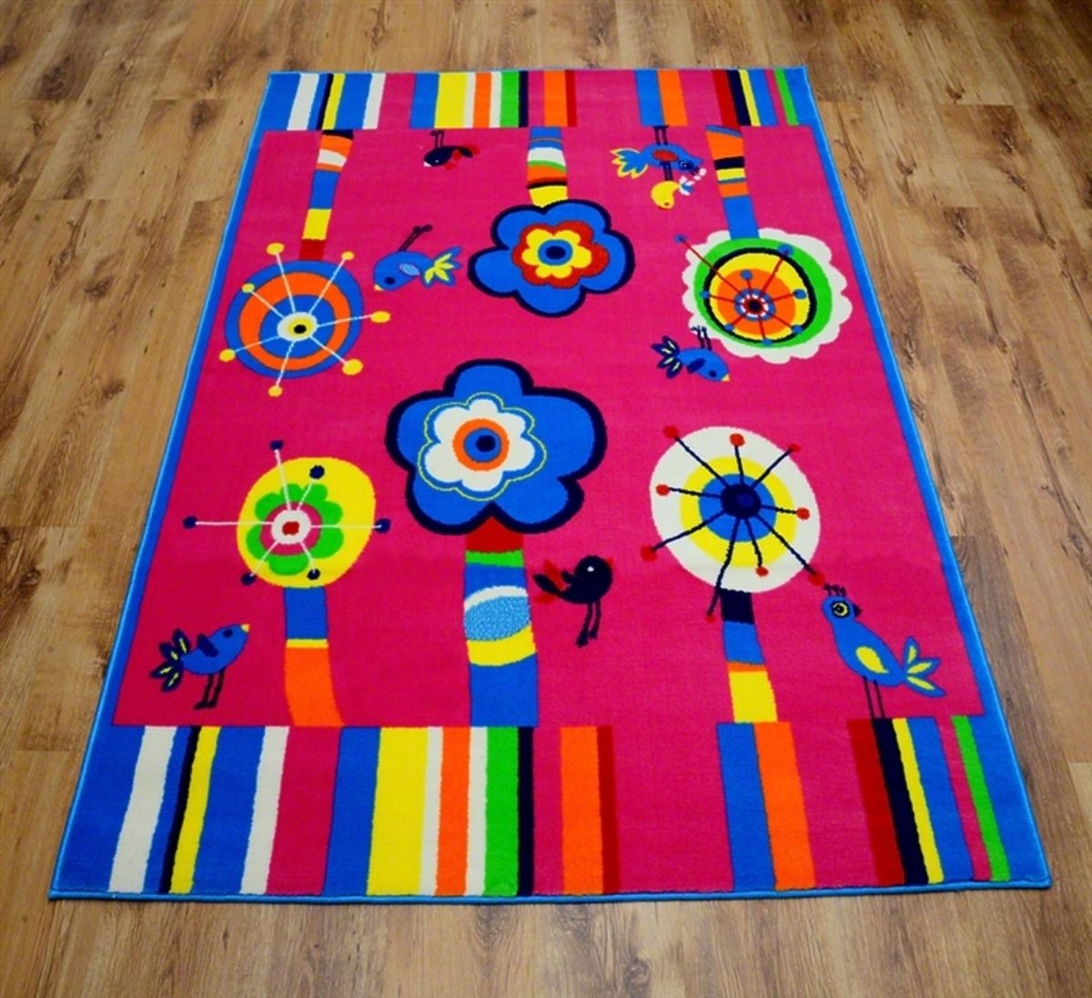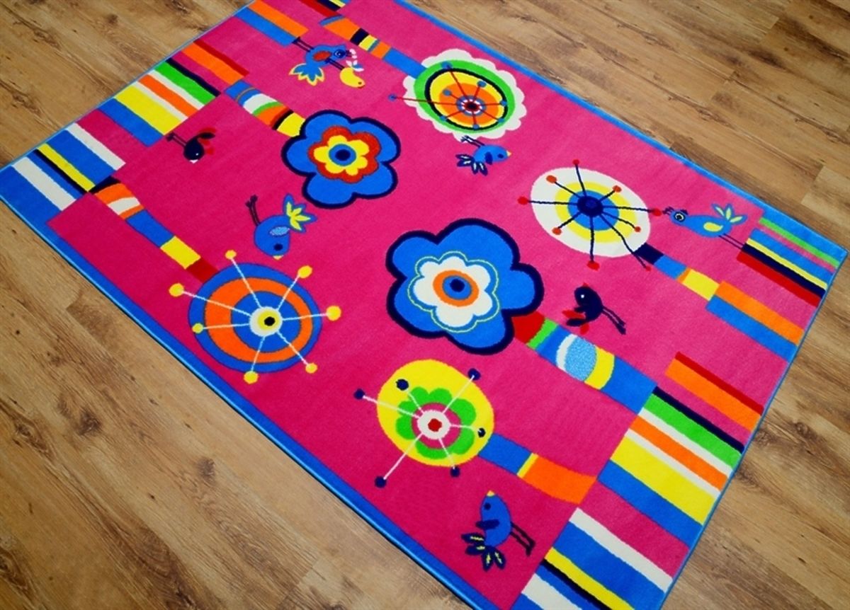 Krásný koberec v růžové barvě s motivem květin a ptáčků. Koberec typu Heat Set je vyroben z polypropylenových vláken, které jsou odolné proti chemikáliím, mají .. více