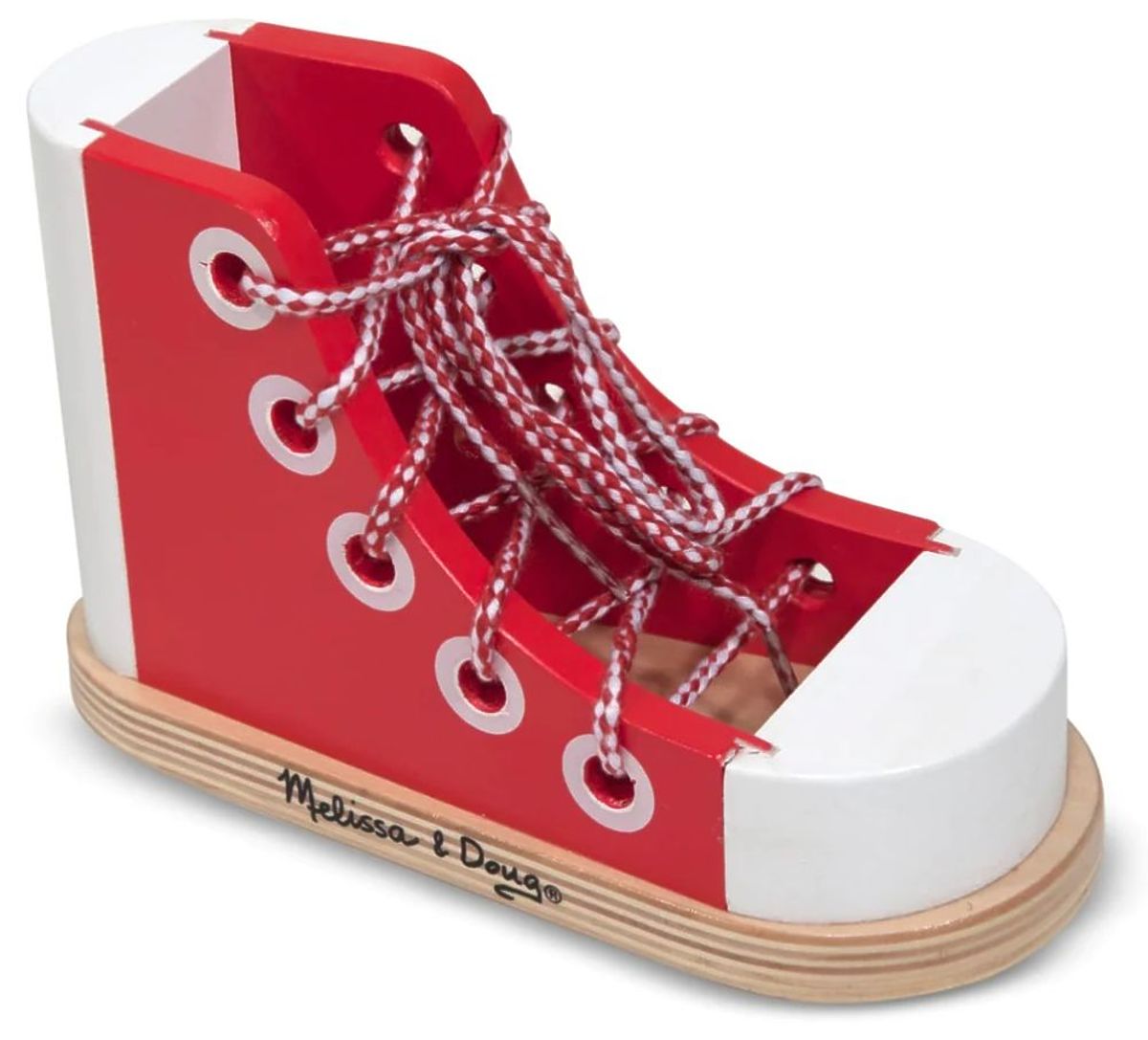 Dřevěná teniska pro nácvik šněrování a zručnosti. .. více