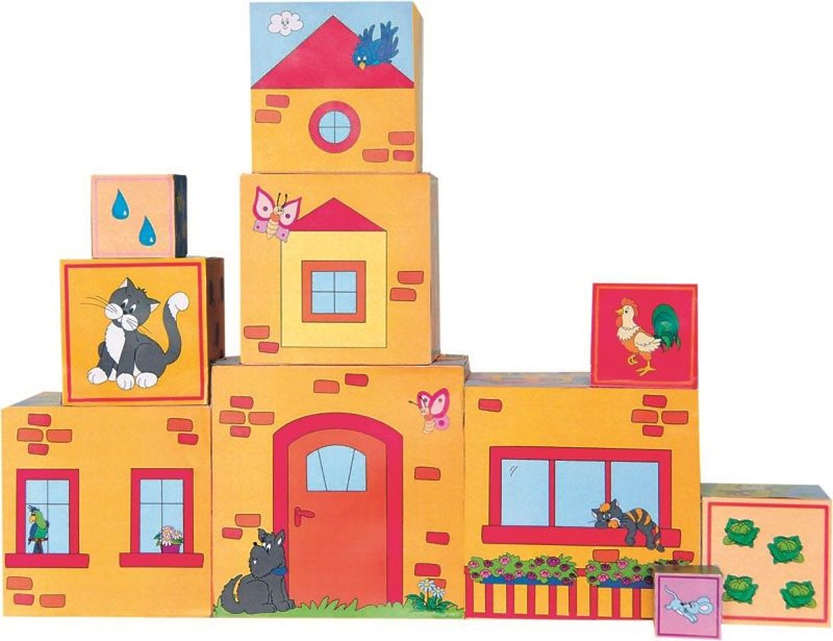 Skládačka kelímky je vynikající hračka umožňující procvičovat pohybovou koordinaci a zručnost. Malé dítě může donekonečna vkládat menší kelímky do větších. (každá kostka nemá jednu stěnu, takže kostky zabírají málo místa, když jsou všechny vloženy dovnitř). Tato sada je také zajímavou skládačkou. Stavěním věže dítě procvičuje koordinaci ruka-oko a skládáním obrázku logické myšlení a asociace.