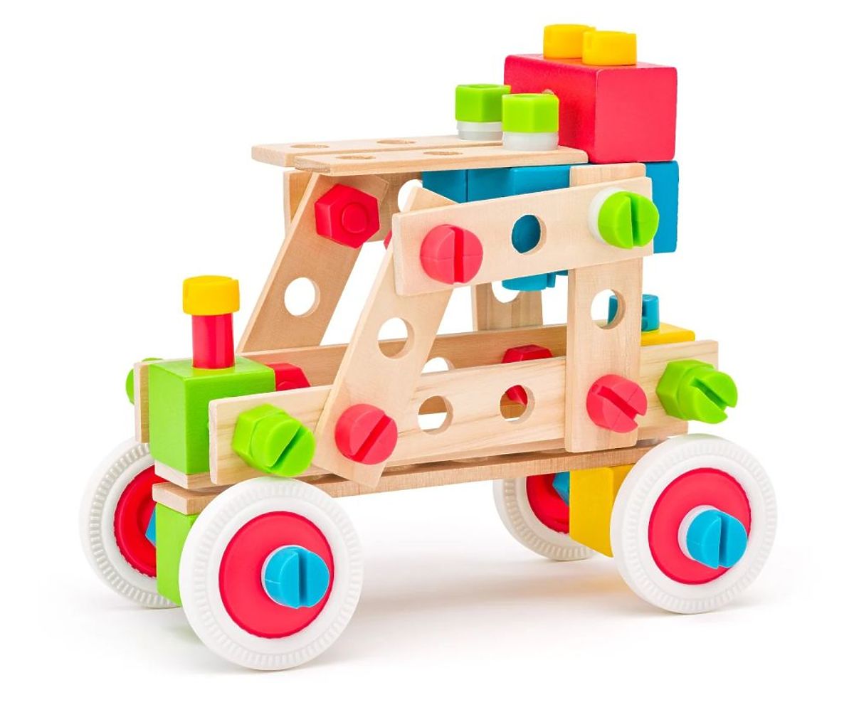 Velké množství dílů umožňuje dítěti stavět a šroubovat kostky stále novými způsoby. Taková stavebnice je snem každého chlapce, ale i dívky si s ní rády hrají. Produkt je také vhodný pro společnou zábavu s kamarády.