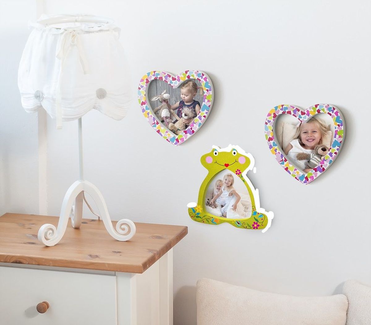 Ale to stále není konec. Tato sada byla navržena tak, aby po použití nebo přesypání korálků bylo možné použít jejich krabičku ve tvaru žabičky také jako rámeček na fotografie nebo jiné obrázky. Rámeček má na zadní straně držák, takže jej lze snadno pověsit na zeď. Tímto způsobem získáte zajímavou dekoraci do dětského pokoje.