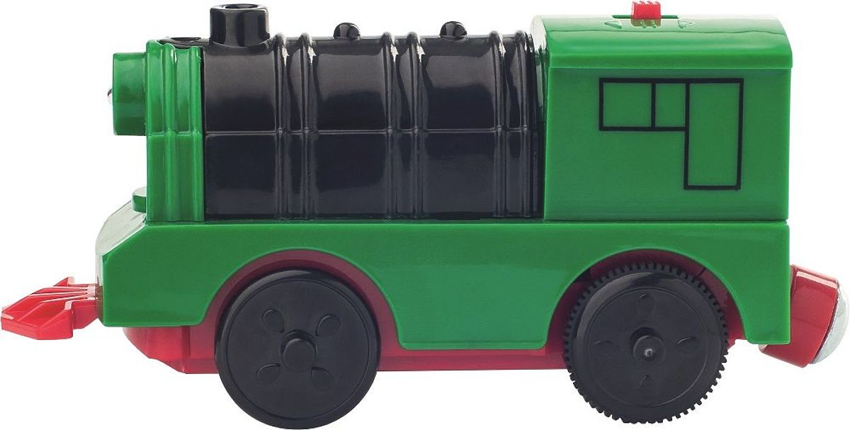 Po vložení baterie je lokomotiva uvedena do pohybu pomocí tlačítka nahoře a může jezdit vpřed i vzad. Lokomotiva na rovném povrchu může táhnout dva vagónky. Do kopce jede bez zátěže.