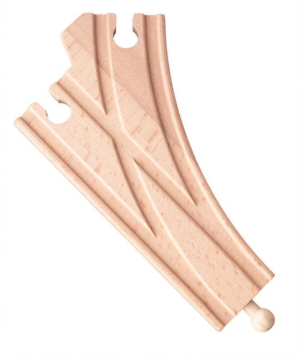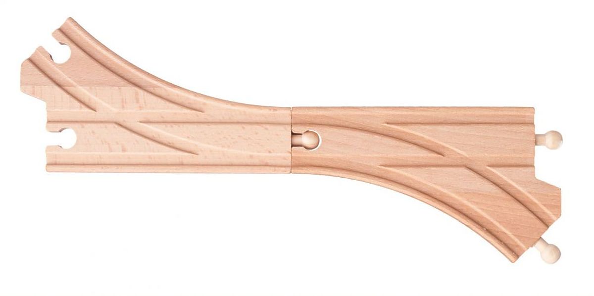 Dva dřevěné prvky po spojení tvoří velkou výhybku ve tvaru písmene "K". Je to další zajímavý návrh pro rozšíření vašich železničních souprav. Hodí se k vytváření křižovatek a spojí dvě koleje na každé straně výhybky. Právě takové výhybky a spojení činí hru s vláčky tak poutavou. Díky různorodým částem budou vaše koleje pokaždé jiné a děti budou mít možnost vytvářet stále nové kombinace. Sada obsahuje dvě dřevěné výhybky, které lze spojovat do výhybky K nebo libovolně spojovat s vašimi kolejemi dohromady nebo samostatně.