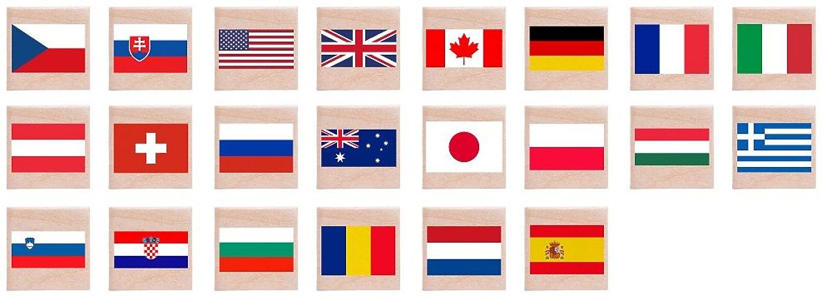 Otočte všechny kostky vlajkami dolů. Každý hráč postupně otáčí pouze dva obrázky. Pokud najde pár, vezme si ho. Vyhrává ten, kdo nasbírá nejvíce párů.