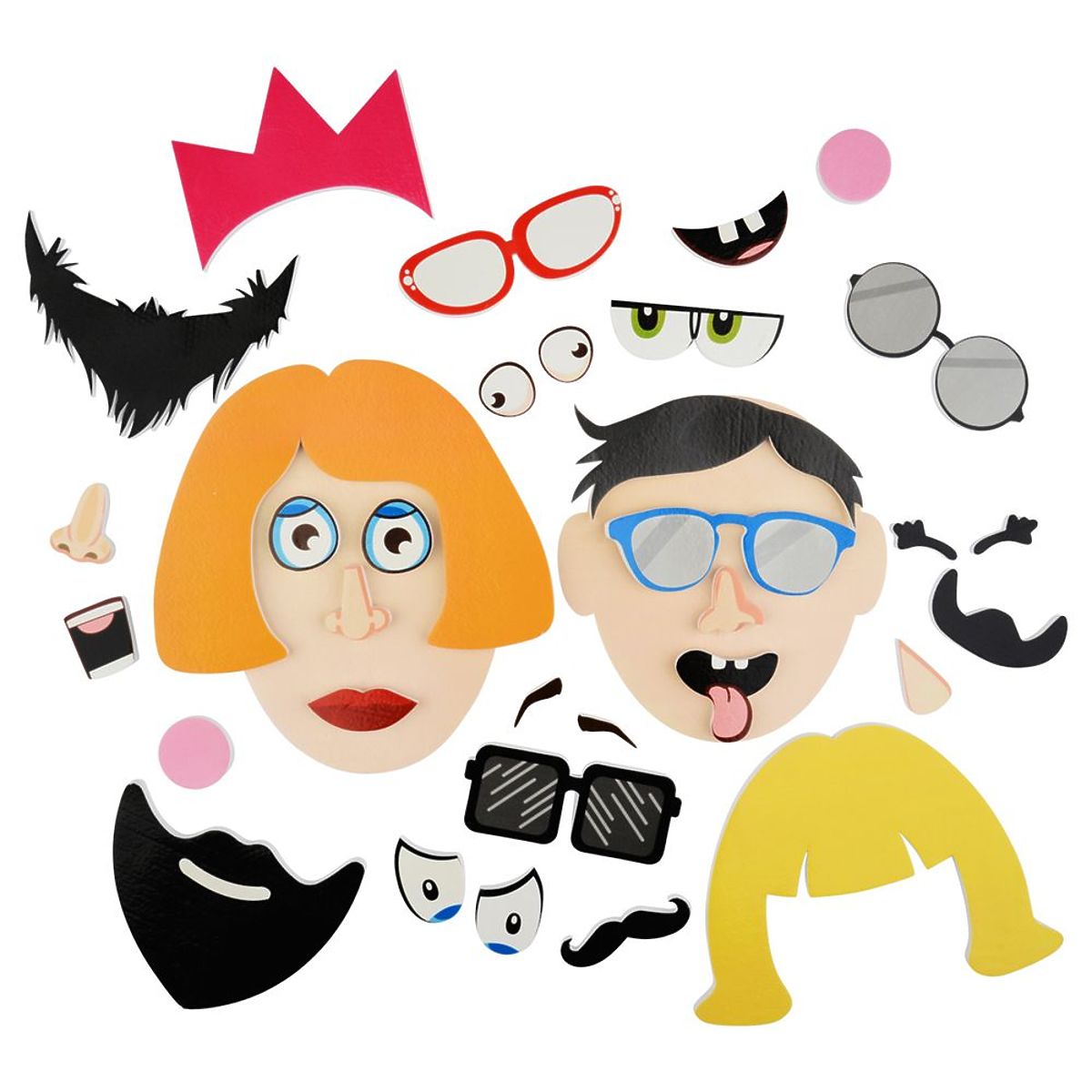 Tato sada umožňuje vytvářet vtipné a bláznivé tváře. Pokaždé může vypadat jinak. V sadě najdete základ (tvář) a prvky pro neustálou změnu jejího vzhledu, jako jsou: oči, nosy, vlasy, kníry, ústa a další prvky, jako například brýle. Celkově to zajišťuje, že zábava není nudná, protože nabízí stále nové možnosti vymýšlení jiné postavy. Stačí změnit jeden prvek a celek se změní.