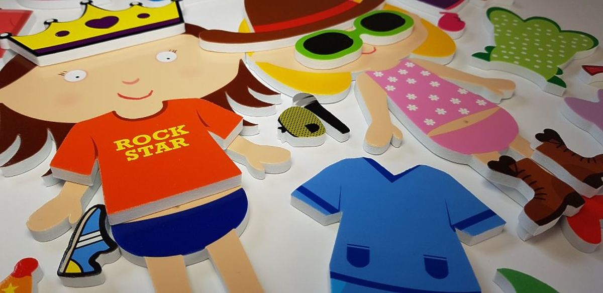 Díky tomu, že v sadě jsou dvě postavy, je možné, aby si hrály dvě děti současně. Nálepky jsou opakovaně použitelné.
