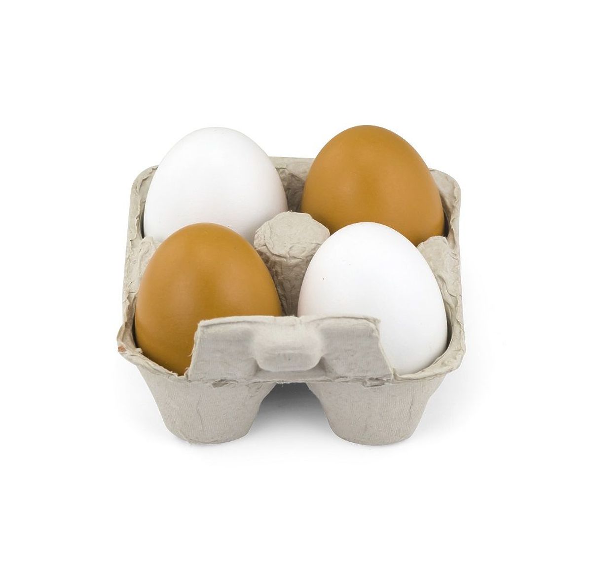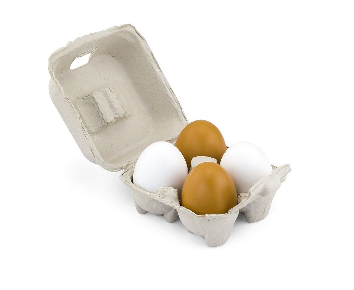 Sada obsahuje 4 velká dřevěná vejce zabalená v charakteristické krabičce. Dvě vejce jsou hnědá a dvě bílá.