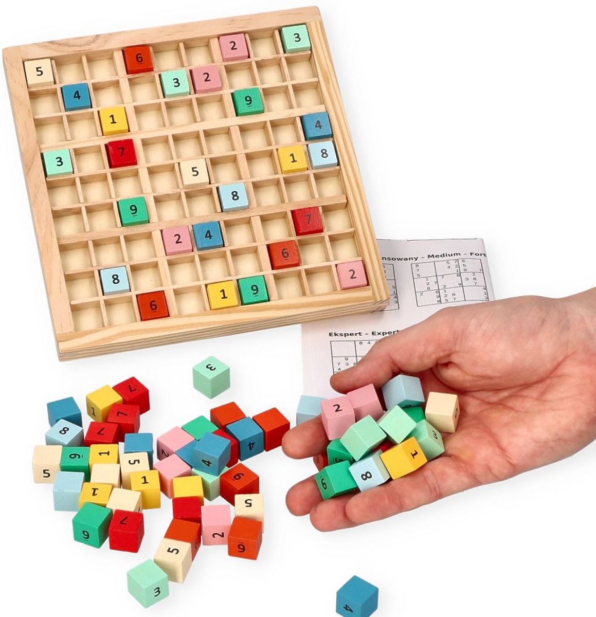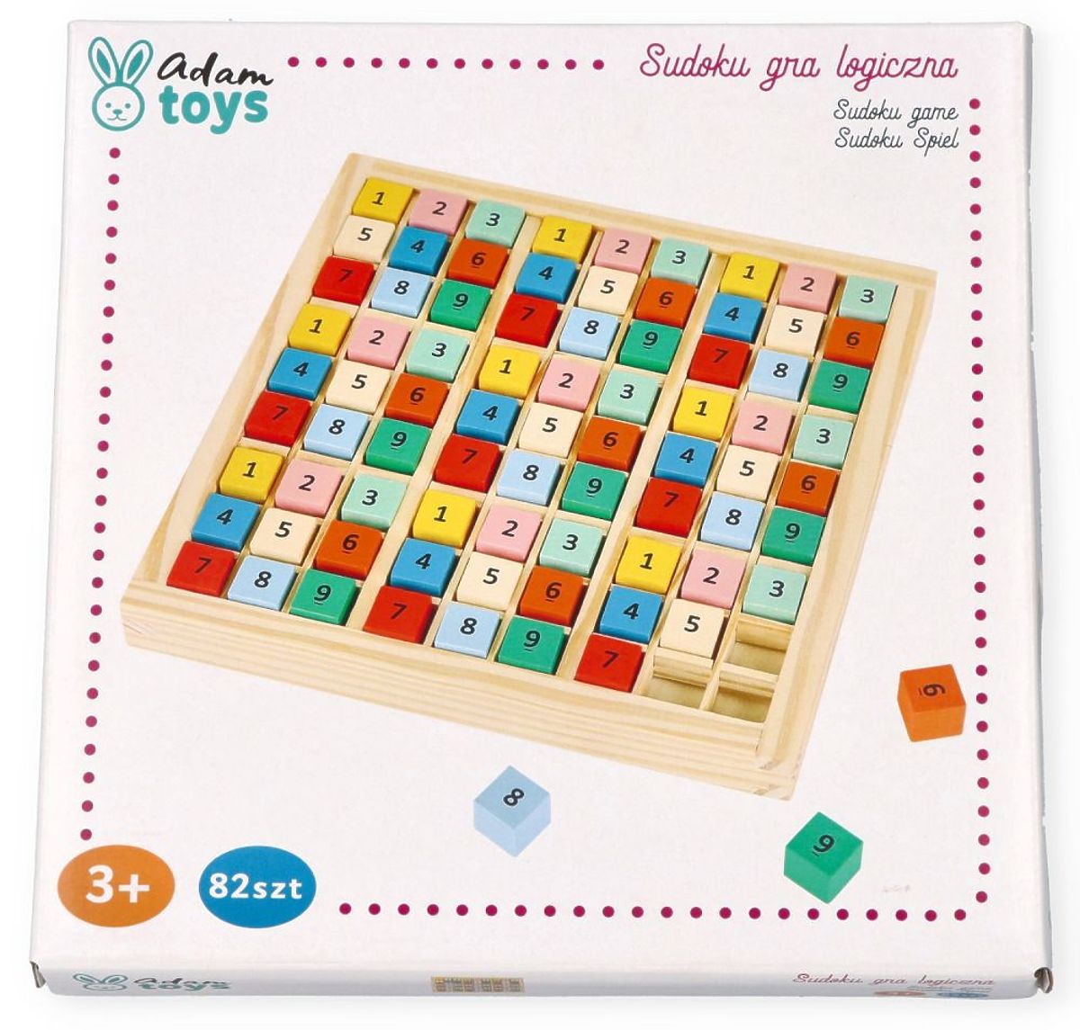 Hra sudoku je skvělý způsob, jak trávit čas společně s dítětem, a navíc je to ideální způsob, jak rozvíjet dovednosti logického myšlení a dedukce. Právě cestou dedukce a eliminace se dospívá k řešení. Každá číslice má navíc jinou barvu, aby vizuálně také napověděla dítěti, zda správně umisťuje kostky. Kvalita zaručena, hračka vyrobena s největší precizností od značky Adam Toys.