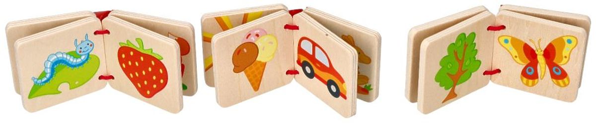 Dřevěná mini kniha s motivy zvířátek a předmětů. .. více