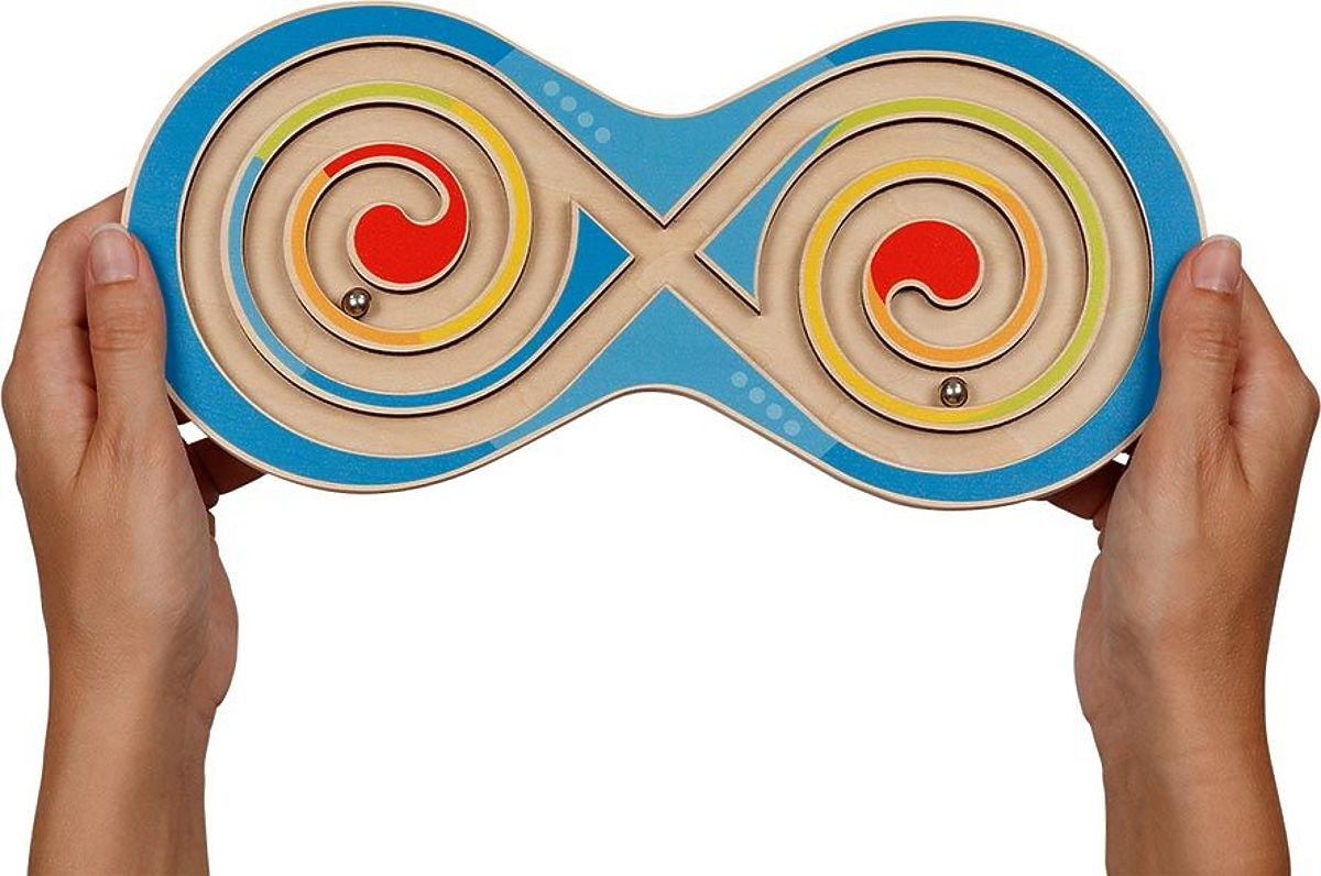 Hra s diskem je jednoduchá, ale přináší hodně uspokojení a především je to skvělý rozvojový nástroj. Stačí vložit dovnitř kuličku (když získáte praxi, můžete vložit 2 nebo více kuliček), uchopit disk z obou stran a začít jízdu :) Uprostřed dřevěného disku je vyřezán labyrint ve tvaru spirály. Vaším úkolem bude samozřejmě tak řídit disk, aby se kulička volně pohybovala po labyrintu z jednoho konce na druhý.